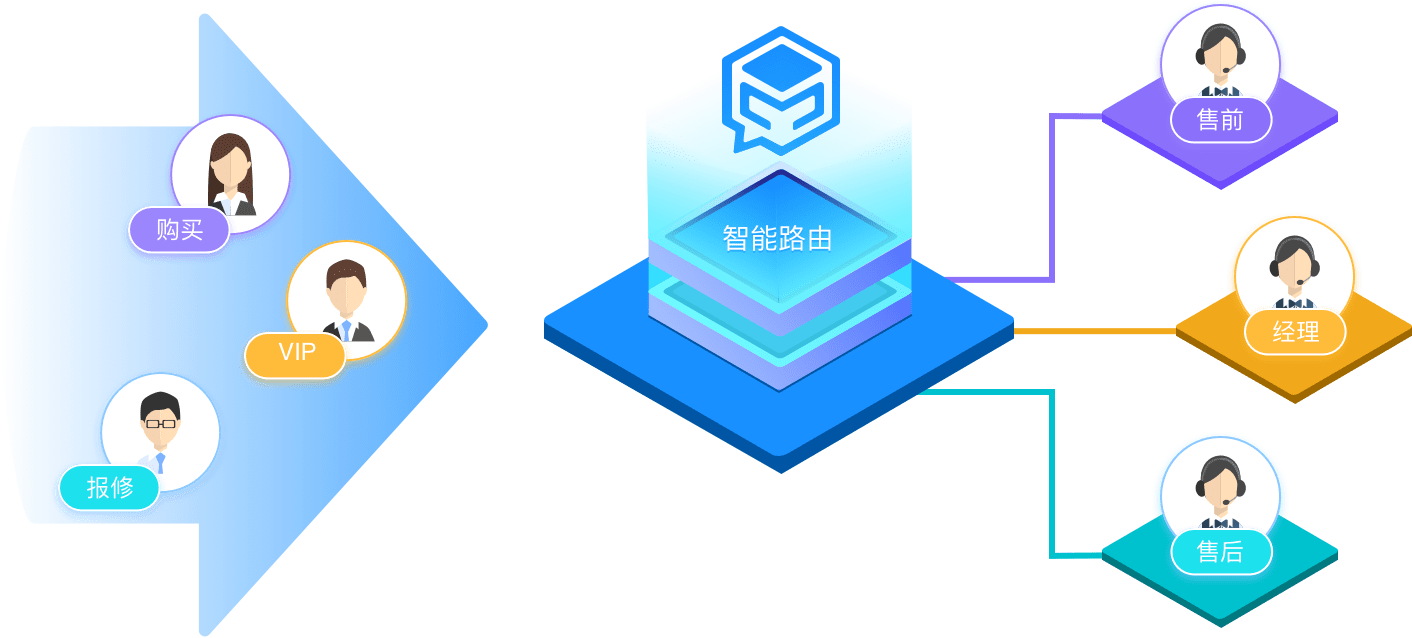 原有的呼叫中心系统只能按照既定的队列将客户分配至不同的业务队列,无法精细化运营客户;